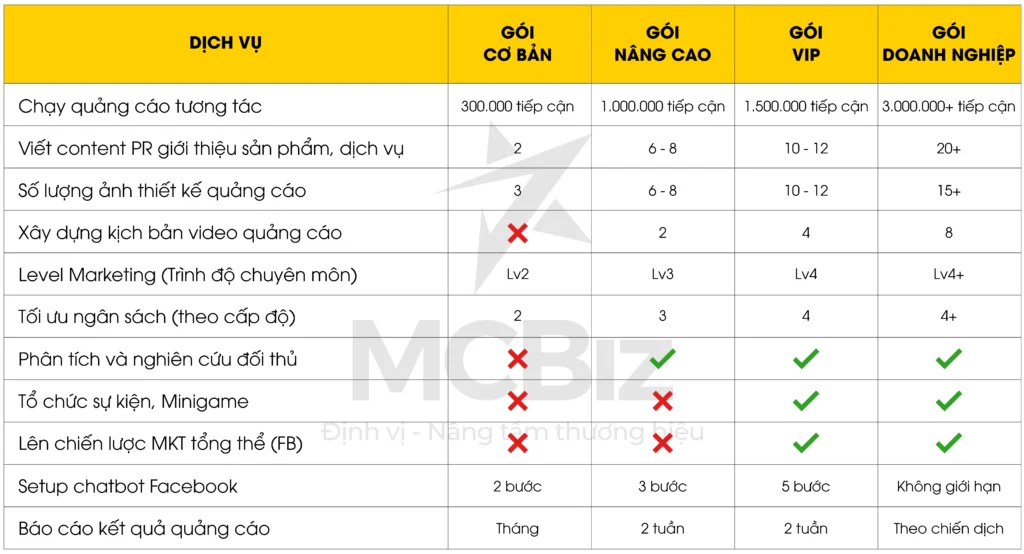 Bảng báo giá bao gồm toàn bộ chi phí Marketing: lên content, tạo tài khoản, thẻ thanh toán quốc tế, chi phí setup tối ưu và chi phí khác…;