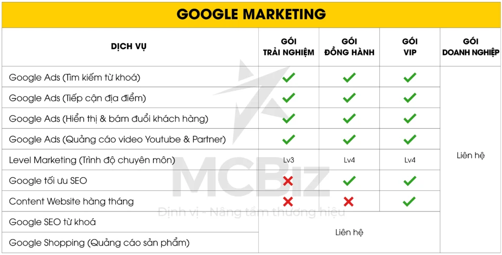 MCBiz là đối tác trên 10 năm của Google tại Việt Nam. Chúng tôi tự tin cung cấp dịch vụ SEO, ADS và Google shopping mua sắm sản phẩm cho doanh nghiệp một cách chuyên nghiệp hiệu quả nhất với mức giá tối ưu nhất.